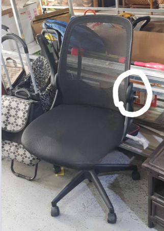肘置き部分に欠品・破損がありましたが、椅子としての使用に問題がなかったため、リユースできました!